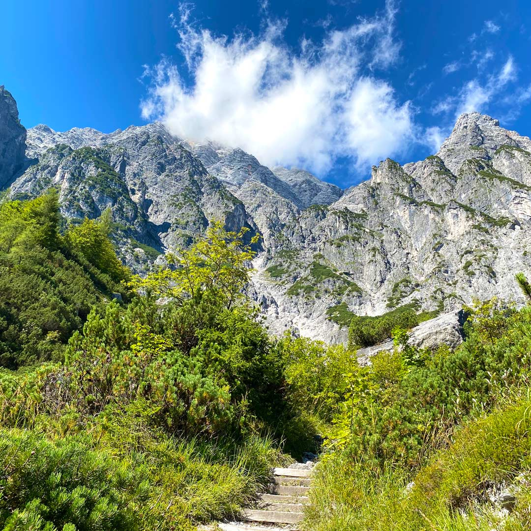 This trek to Birnbachloch is for experienced hikers, as it demands a high level of endurance and navigational skills through challenging terrain. As you step onto the trail, you'll find yourself immediately immersed in a serene forest, with sunlight filtering through the canopy and the gentle rustle of leaves underfoot.