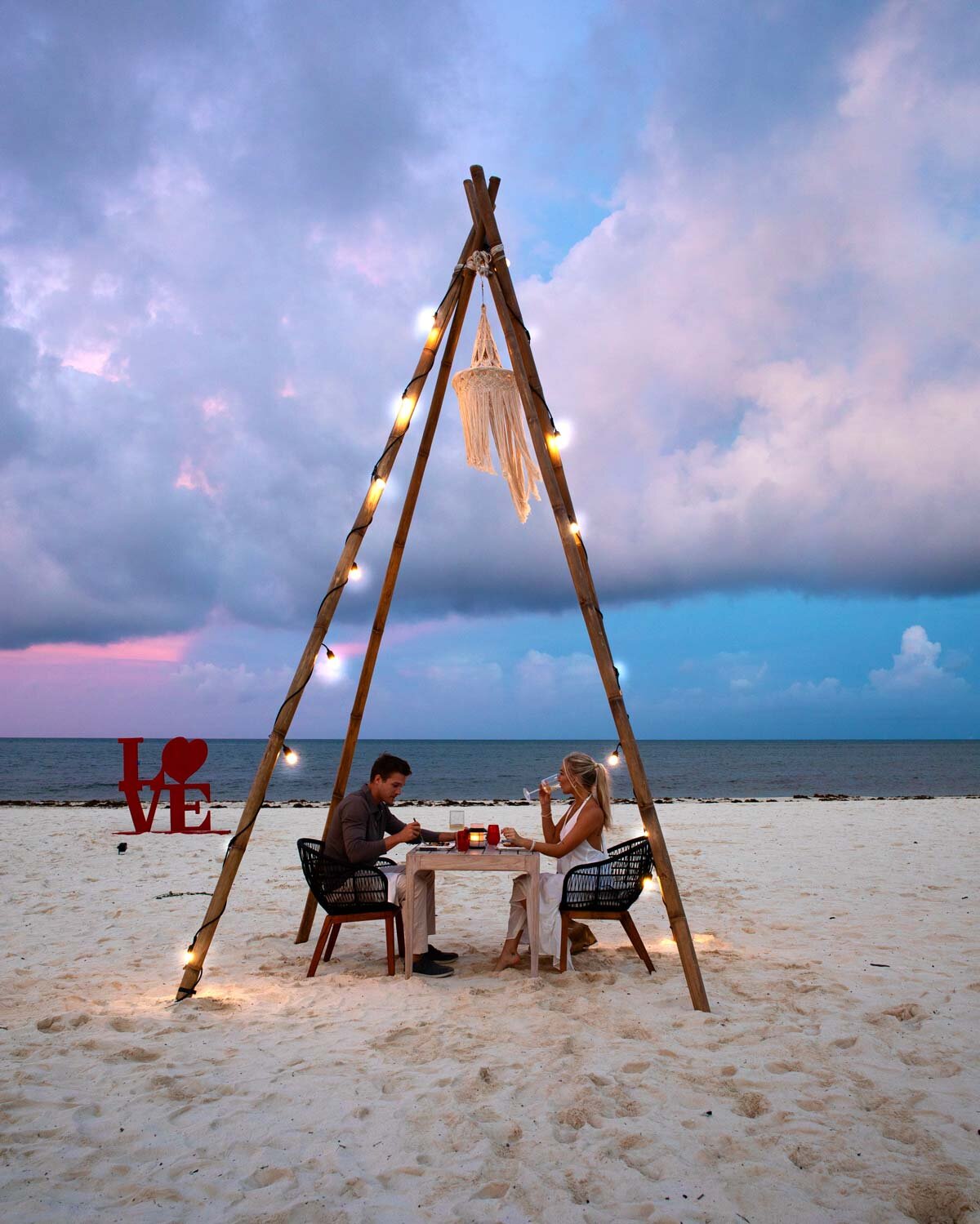After a quick shower, it was off to enjoy our last night in paradise with something really special… a private dinner on the beach. The staff builds these adorable little teepee set-ups, filled with twinkle lights and an elegant set table. As we enjoyed a glass of wine, our 4-course meal was served to us under the stars. In the distance, we could hear the music from the hotel and the sounds of the waves. It was the perfect way to end the night.