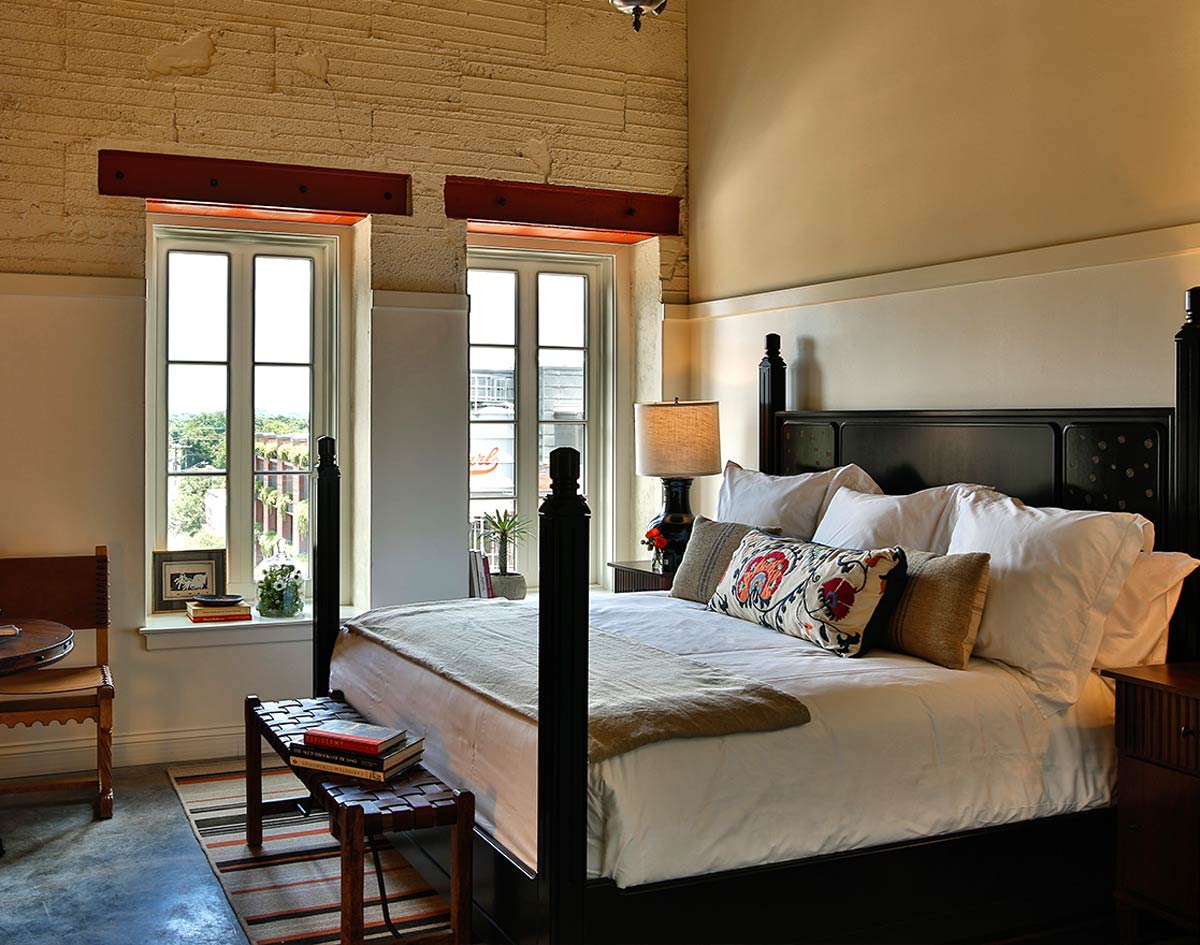 Mornings begin gently. Breakfast is served in spaces shaped by history, where machines once moved and time now stretches. Later, the pool and terrace open to the Texas sky. The past rests comfortably beside the present.
