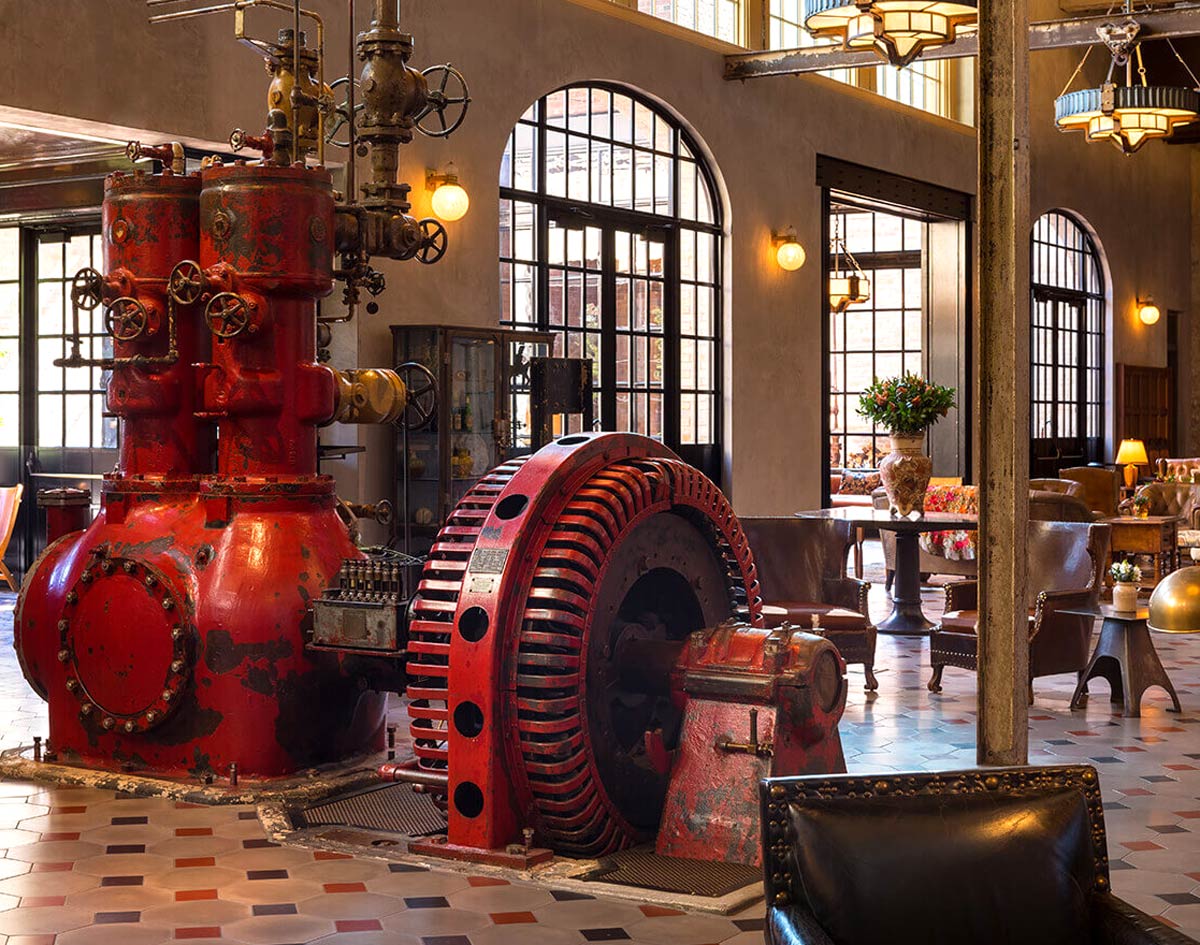 Your room becomes a private retreat - generous in scale, layered in texture, created for deep rest and unhurried mornings. Inside, industrial bones meet warmth. Brass flywheels stand like sculptures. Wood, leather, linen, and light soften the space. Nothing feels accidental. Everything feels considered.