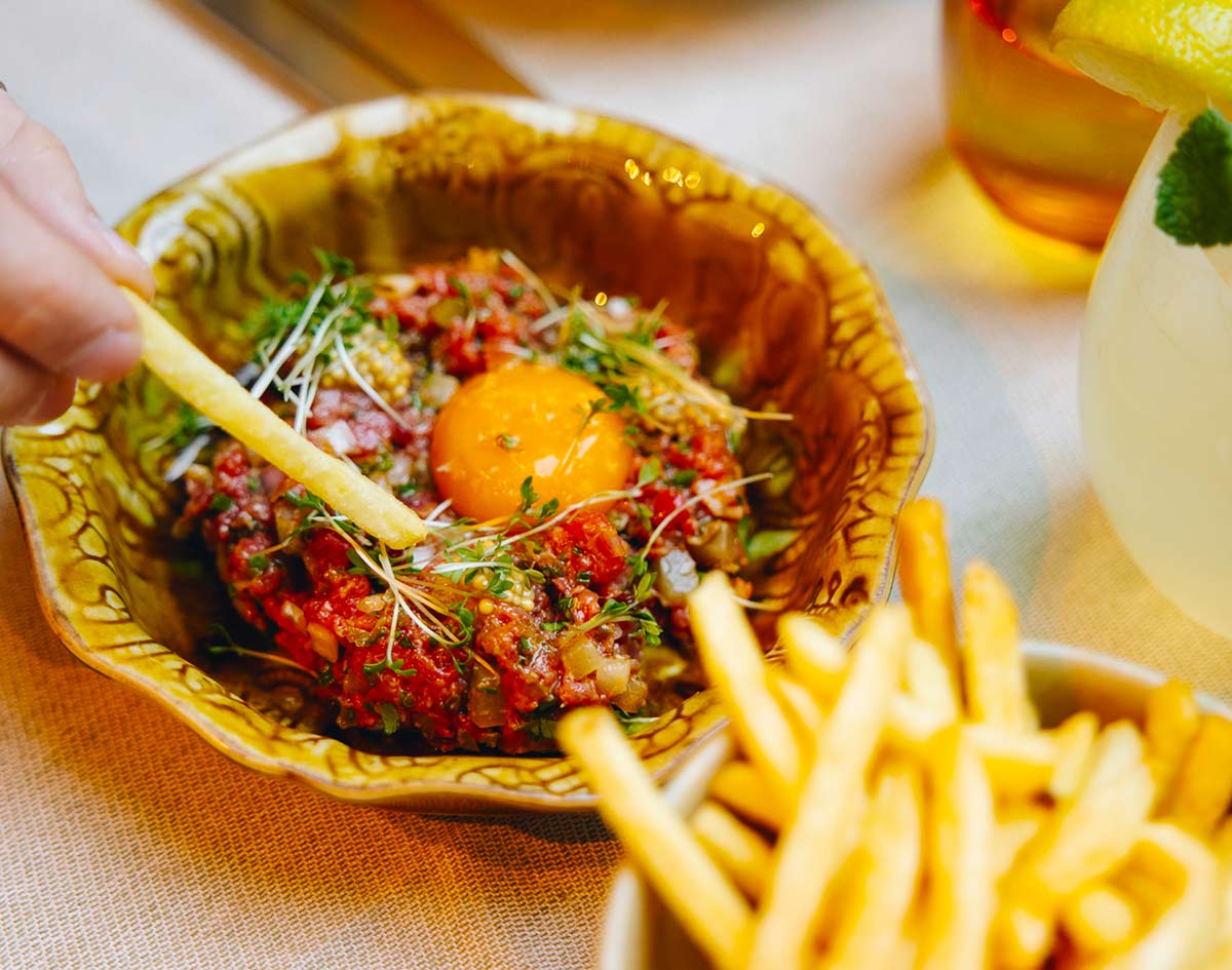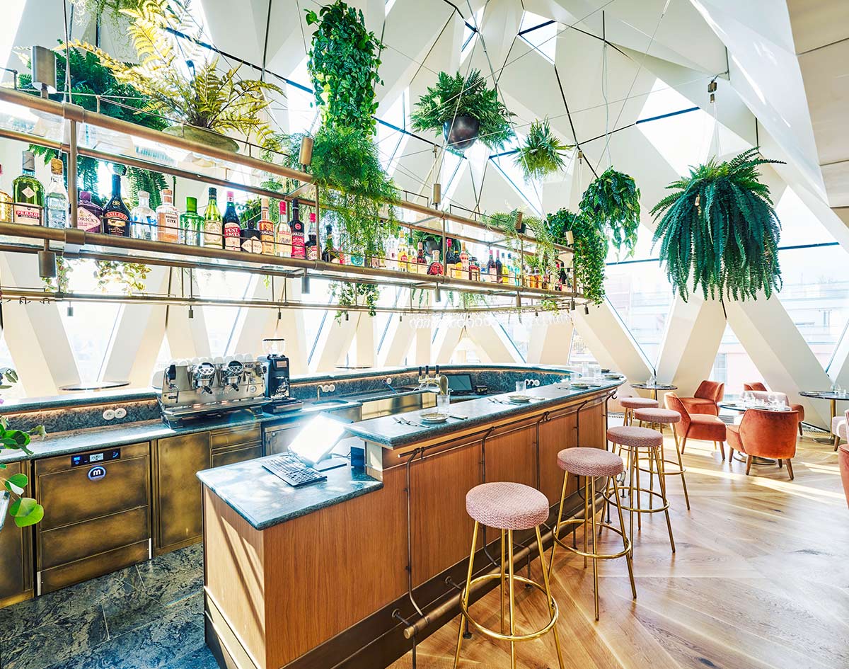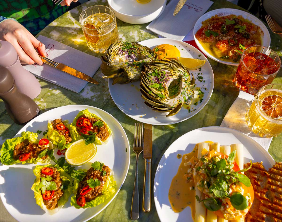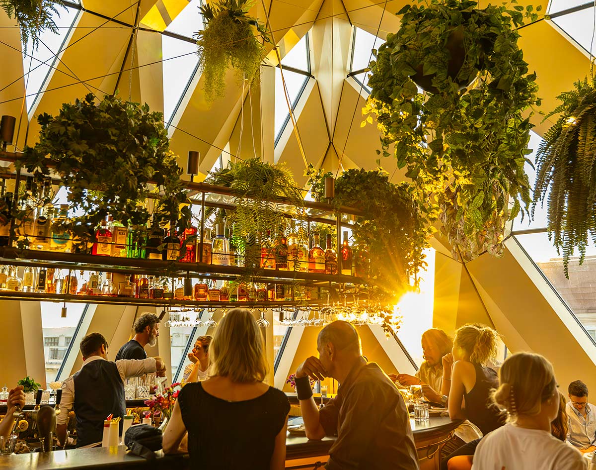 The restaurant Chez Bernard et Bar serves light French-Austrian cuisine with rooftop flair.