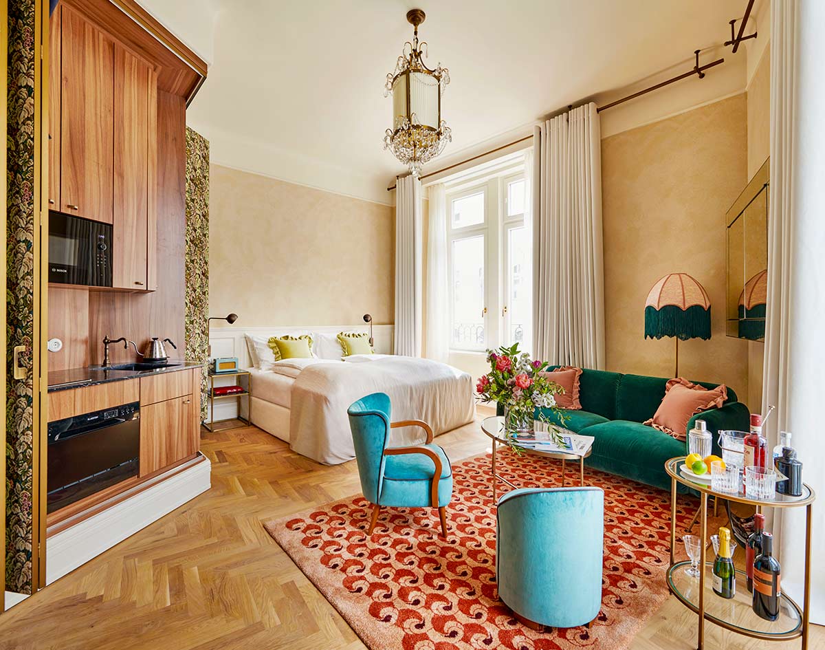 Outside an urban pulse, inside a different tempo: Parisian salon meets Viennese ease.