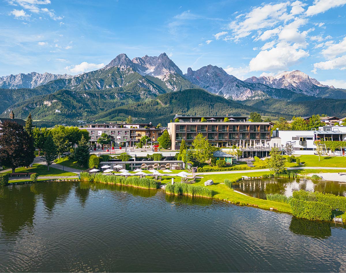 The mountains rise gently behind it, the Steinernes Meer framing the scene with quiet strength.