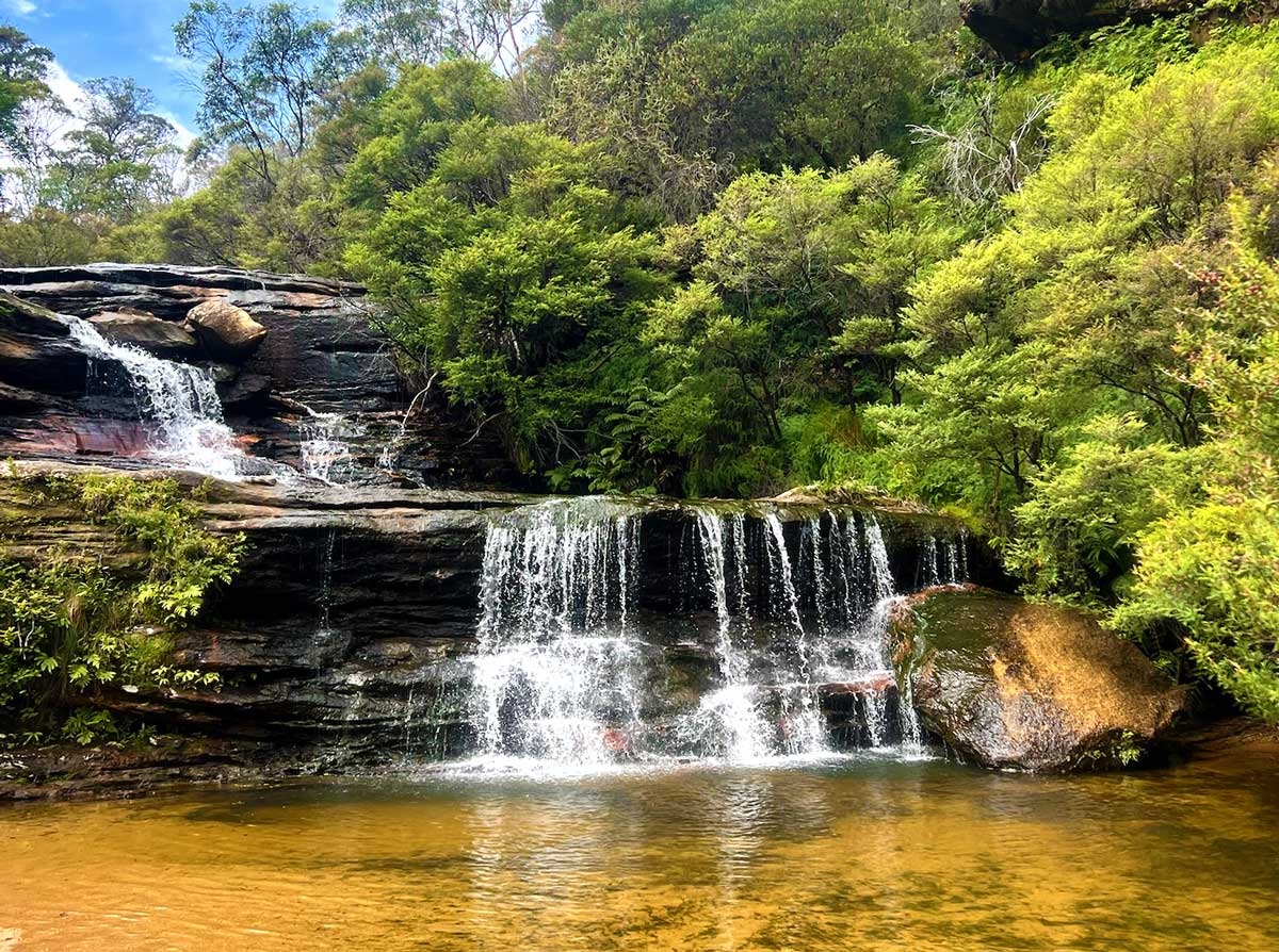 If you are up to exploring another part of the Blue Mountains, I suggest boarding the train from Katoomba to Wentworth Falls station, which is just a short ride away. From the station, embark on the path leading to Wentworth Falls. This trail offers spectacular bush walks and views. If you need a little adventure, veer off the main path to discover a hidden waterfall where you can take a refreshing dip. After your waterfall sprinkles, find a scenic spot to enjoy your picnic. Enjoy your meal while soaking in the stunning surroundings.