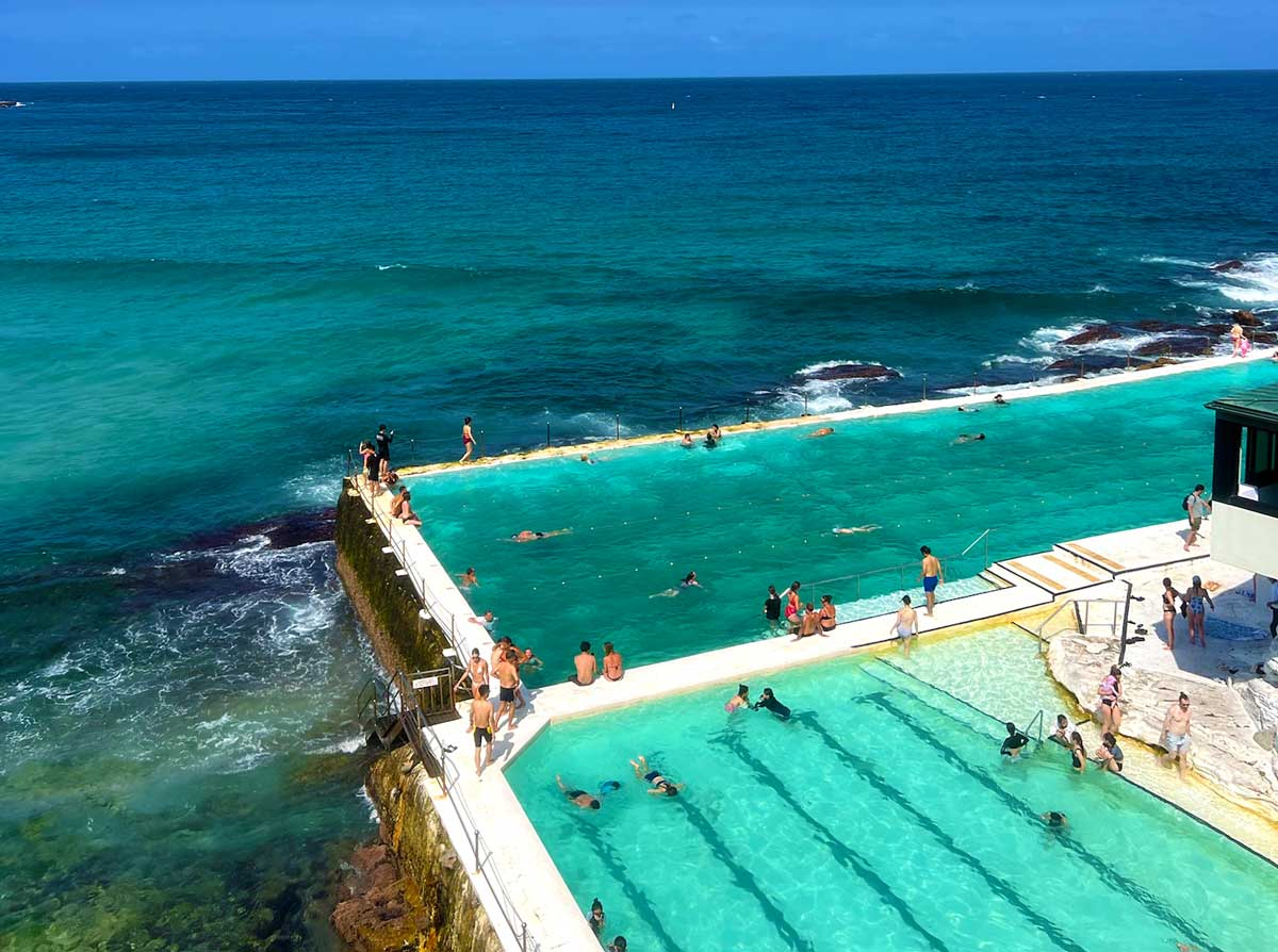 With our energy restored, we’ll spend the rest of the day soaking up the sun at the famous Bondi Icebergs Pool. These iconic ocean pools are open to the public for a small entry fee, offering stunning views of the beach and the crashing waves beyond. Whether you’re down for a refreshing swim or just want to chill by the pool and soak up some sun, the Icebergs Pool is the perfect place to kick back and enjoy Sydney’s coastal vibes!