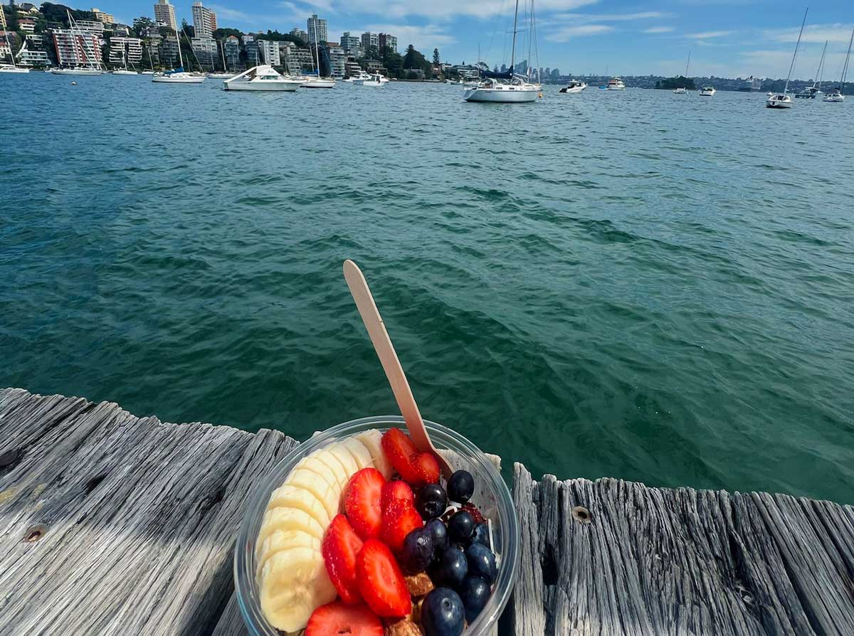 After your swim, you can treat yourself to something delicious at the cafe located at the top of the stairs. They offer a great selection of refreshing drinks, smoothies, acai bowls, salads, and sandwiches—perfect for a light and healthy lunch by the water.