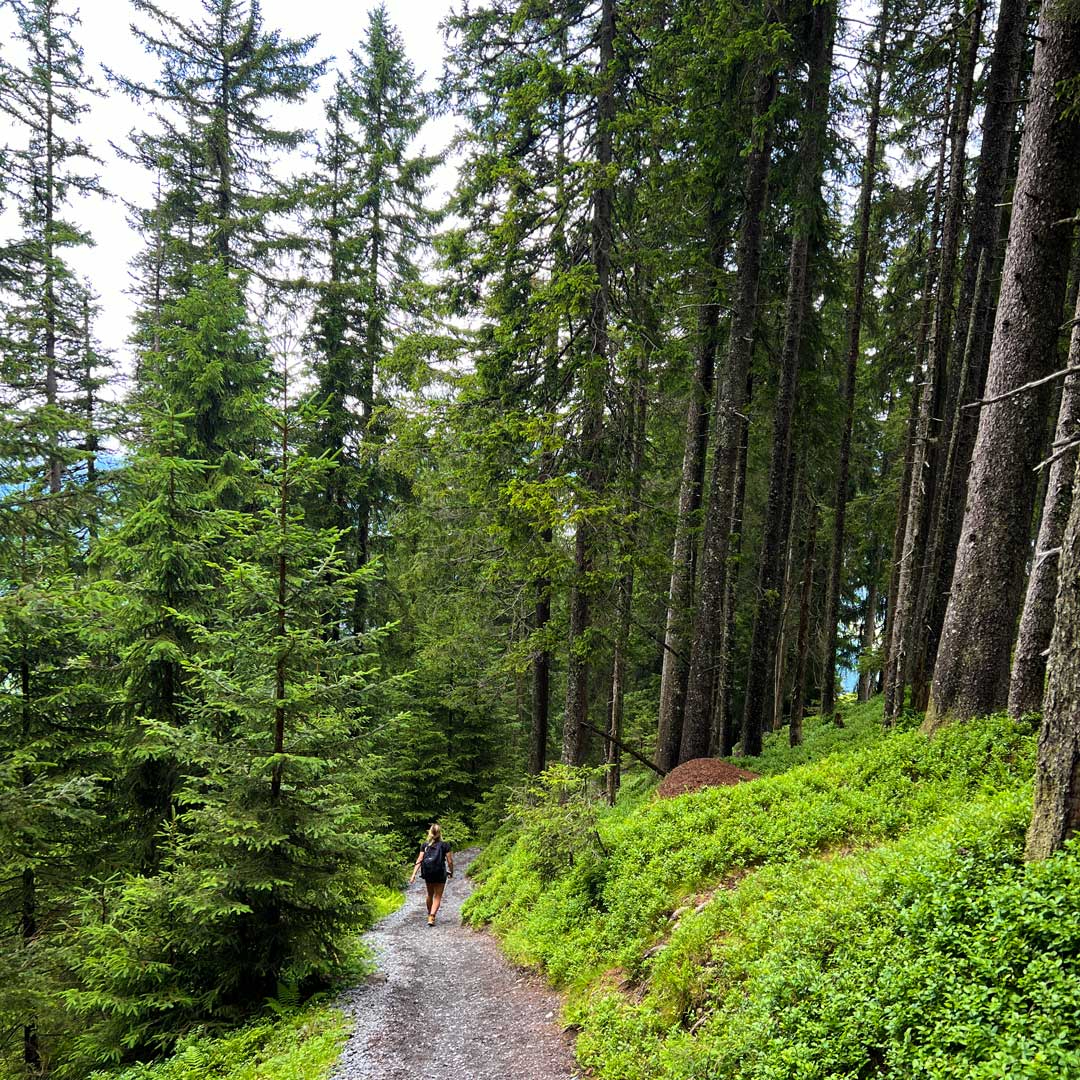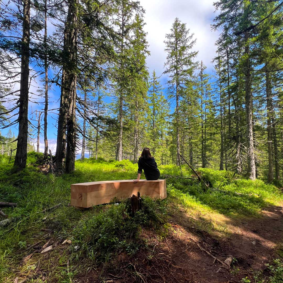 Forest Bathing: The next day was pure bliss on the Shinrin Yoku path. This trail, designed for forest bathing, offered a unique opportunity to soak in nature's tranquility. Walking among the towering trees and breathing in the fresh forest air was incredibly rejuvenating. For this, you take the cable car all the way up the Asitz again and start walking down until you see the entrance gate „Waldbaden“. Just follow the marked trail and discover viewpoints and relaxing areas where you can breathe deeply and relax. Each step you take guides you towards a deeper connection with the forest, with the sound of nature all around you. Continuing your walk down, you will end at the Steinberg lift, about 1.3 km from the Asitz station. You can either walk the 20 minutes or jump on a bus that brings you back to Asitz Station.
