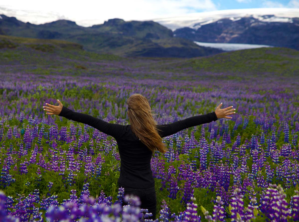 The landscape is really impressive with its rolling green hills, wild volcanic terrain, and fields of lupine flowers popping in every shade of purple, making every corner feel like we’d wandered straight into nature's paradise.