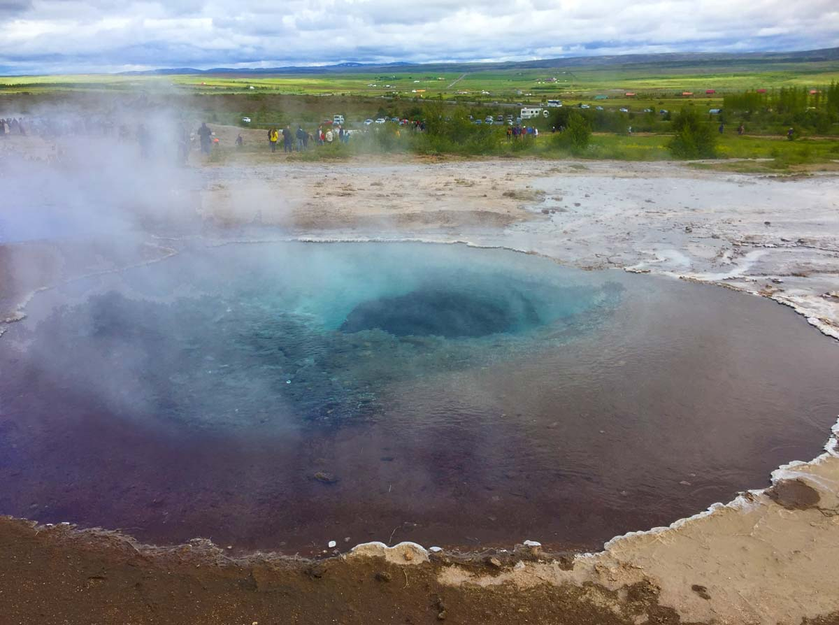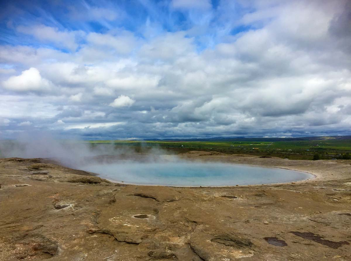 Then, it was off to Haukadalur Valley, home of the legendary Strokkur geyser. Every 5–10 minutes, the geyser is shooting boiling water up to 30 meters (about 98 feet) into the air like nature’s own fireworks show! The name "Strokkur" actually comes from the Icelandic word for "churn" or "stir," reflecting the way the water is stirred up before each eruption! We were totally mesmerized until the wind changed direction and gave us an unexpected geothermal shower. Iceland, you cheeky little thing. :)