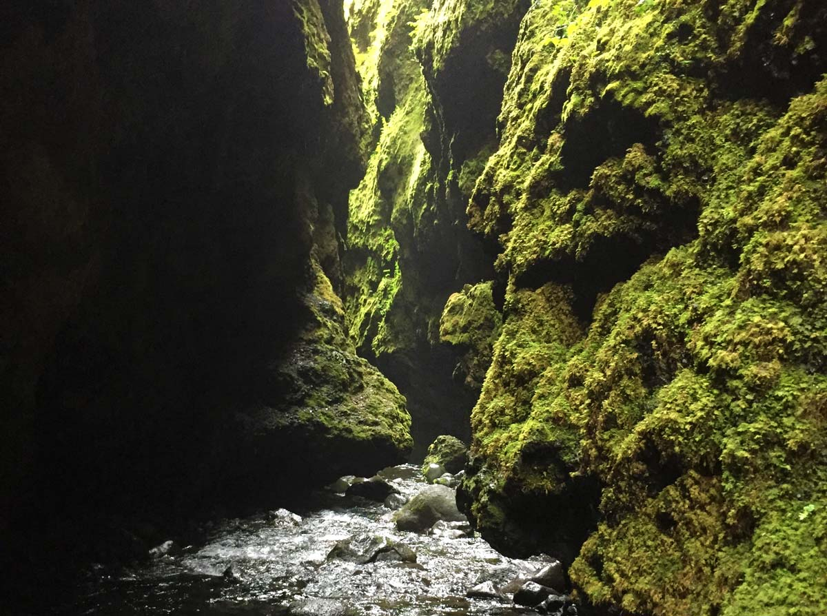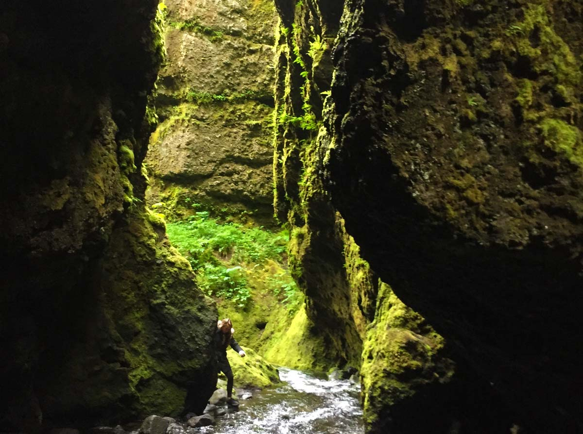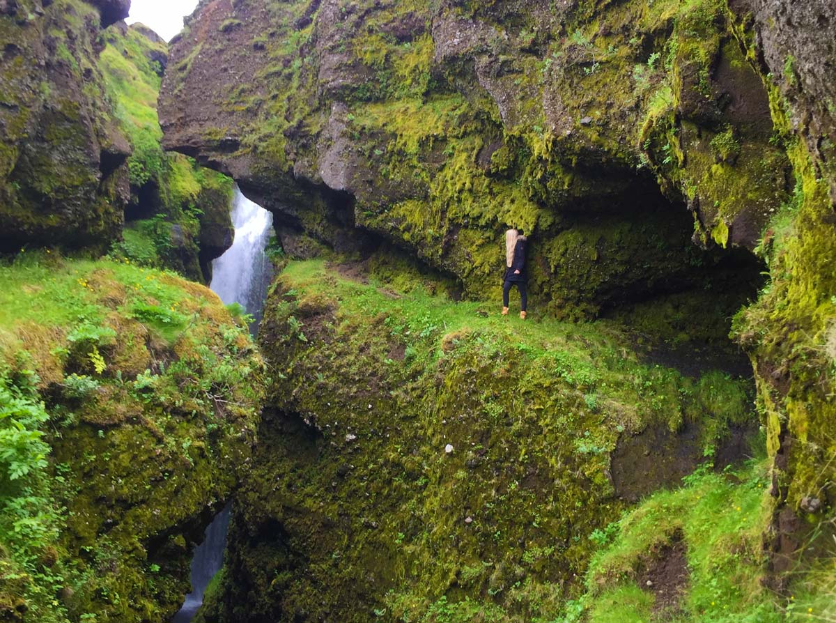 The day ended with a hidden gem. Gljúfrabúi. To reach Gljúfrabúi, you have to walk through a narrow gorge, and while there are some rocks to step on, you’ll definitely need to wade through the water. But no worries, ropes are guiding the way, so we held on like pros as they helped us navigate the entrance to this sneaky little waterfall hiding behind a mossy canyon. It was a little slippery, a little wild, but totally worth it to find this hidden gem! Hiking boots soaked? Absolutely. Regrets? Zero.