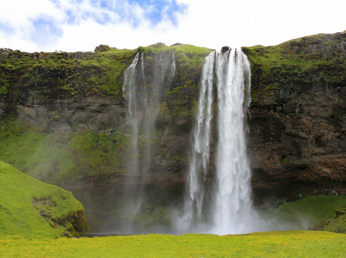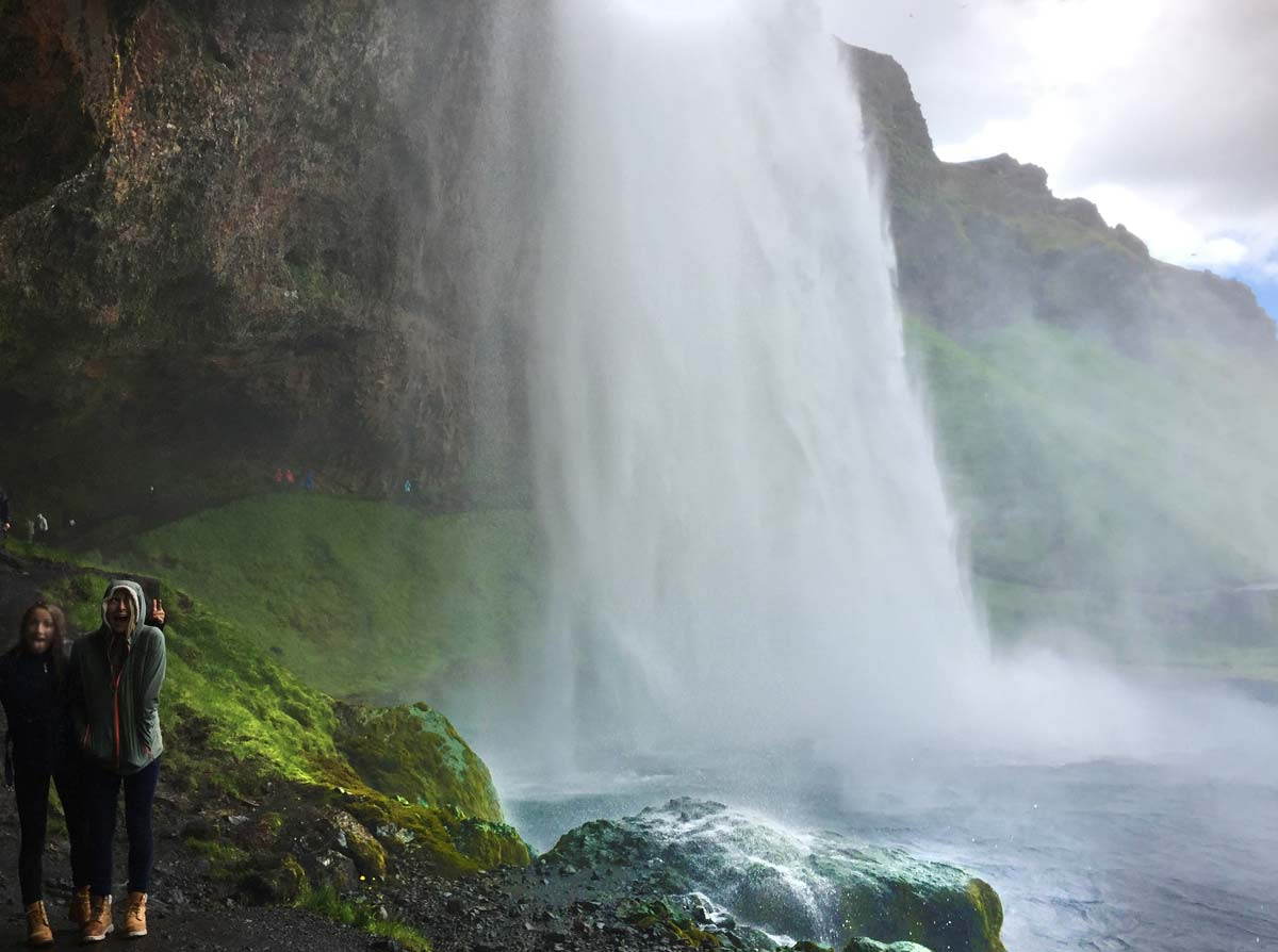 Waterfall chasing continued as we hit Seljalandsfoss, where you can actually walk behind the roaring cascade. At a majestic 200 feet tall, this waterfall is a showstopper in every sense. The path behind it gives you a whole new perspective, with the mist spraying your face as the water crashes down in front of you. It’s like stepping behind a curtain of nature’s pure power, and trust us, it’s totally worth getting soaked for! Tip: pack a rain jacket!